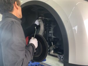 車検整備では、ブレーキやライトだけでなく、足回り(タイヤやサスペンション)の点検もとても重要です👐
